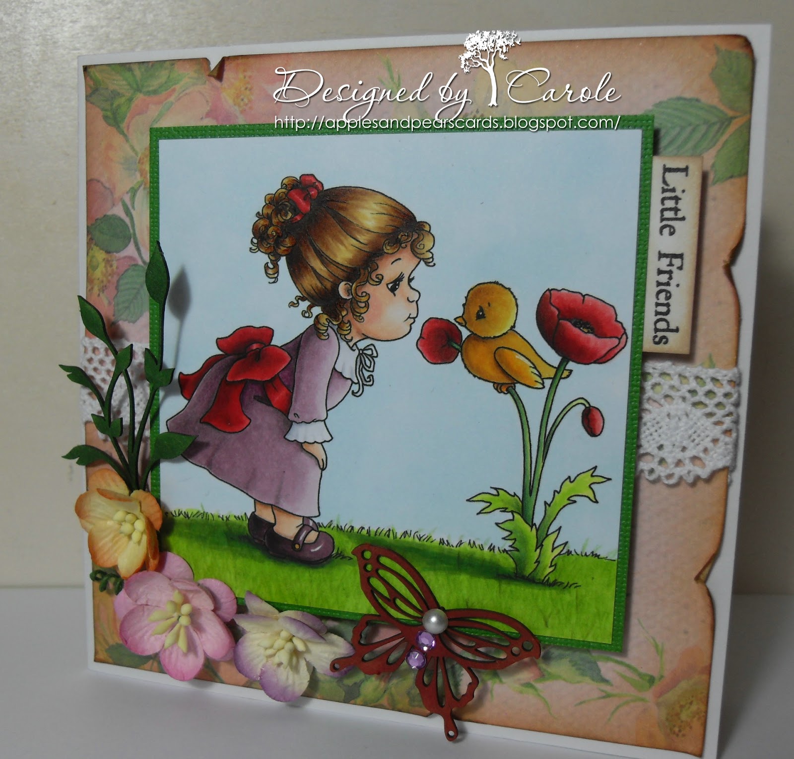 OMG, Carole...what adorable images and you know I love your fabulous coloring!!!! I love the shabby look of the first card with the distressed edges, lace and flowers...the sweet little girl looks like she is in the middle of an English garden!!! I love the precious little boy card, too...the sentiment is adorable and I love how you added the buttons!!